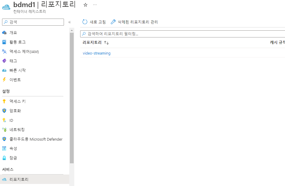 위에서 생성한 container registry 에서 access key 로 들어간다.
