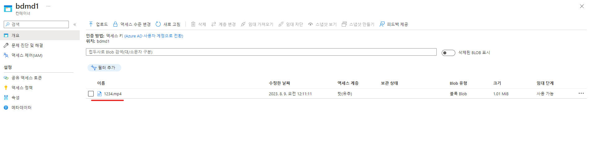 Azure Storage 에 mp4 파일 업로드