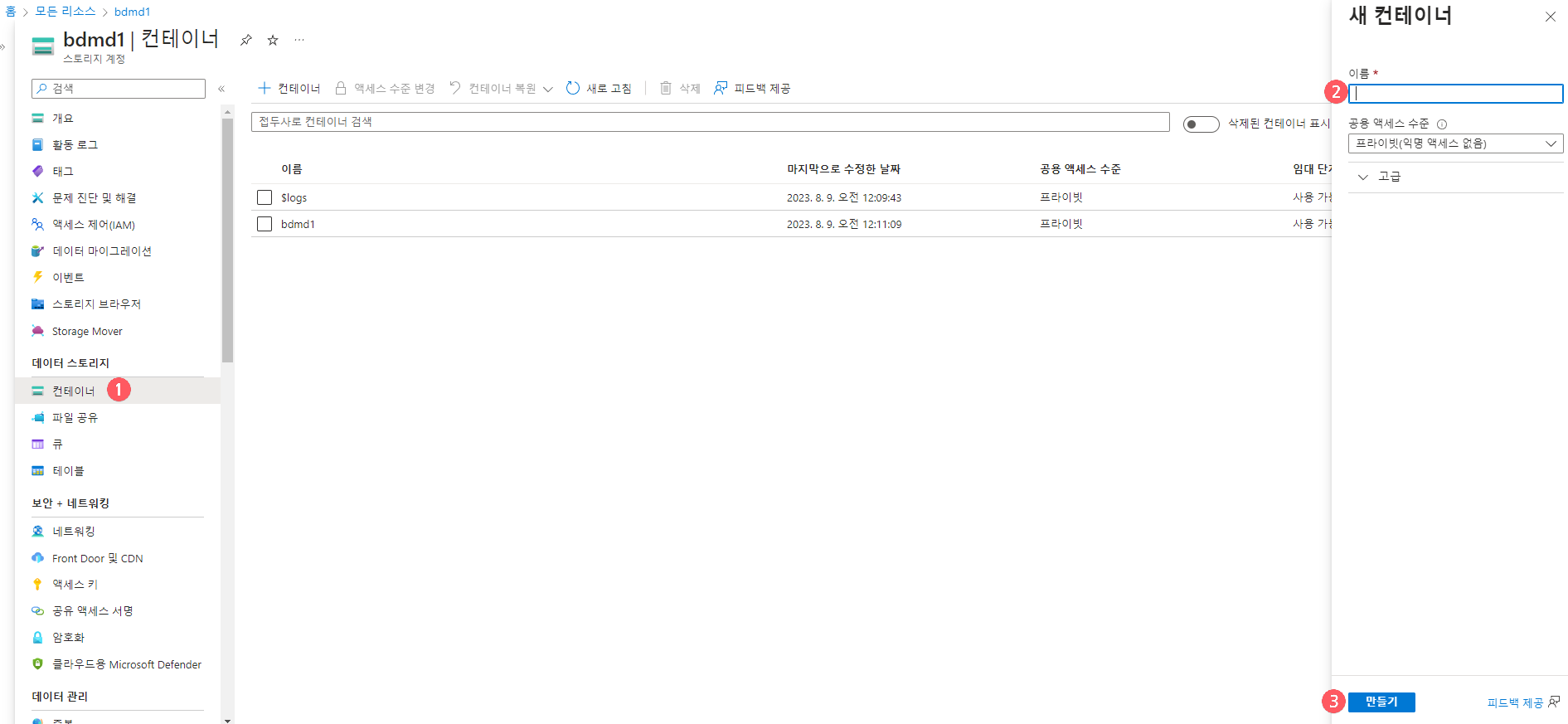 Azure Storage Container 생성