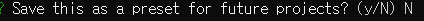 그리고 이 프리셋을 저장할건지 나는 N으로 했다.