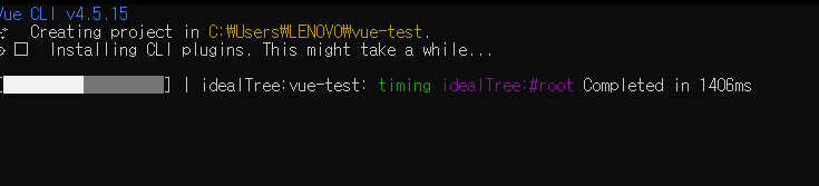 나는 vue-test로 하겠다. 여기서 주의할 점은 프로젝트명은 소문자만 가능하다. 대문자만 넣으면 만들어지지 않으니 주의