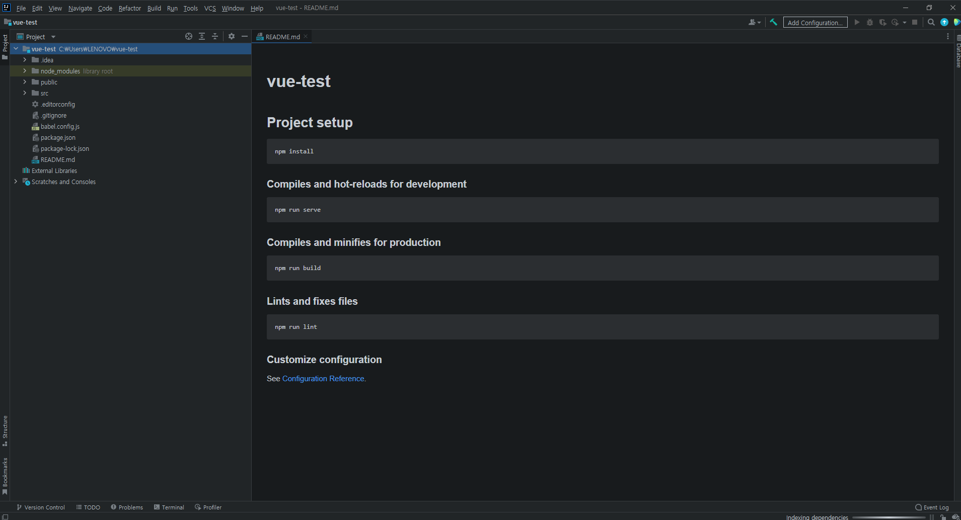이제 IntelliJ를 키고 만든 Vue 프로젝트를 연다.