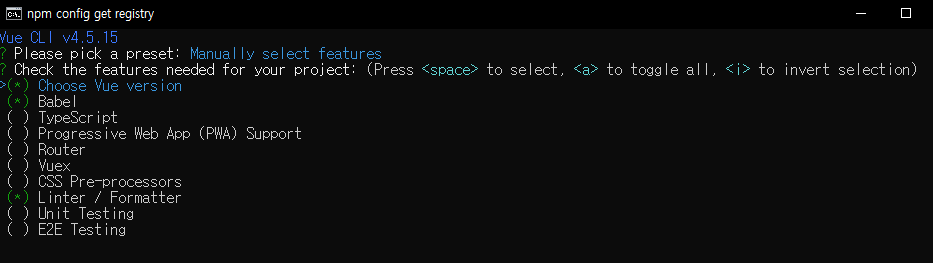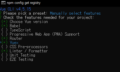 default로 해도 좋지만 나는 vuex와 router를 추가 할 것이므로 맨 밑에 Manually를 선택(default로 해도