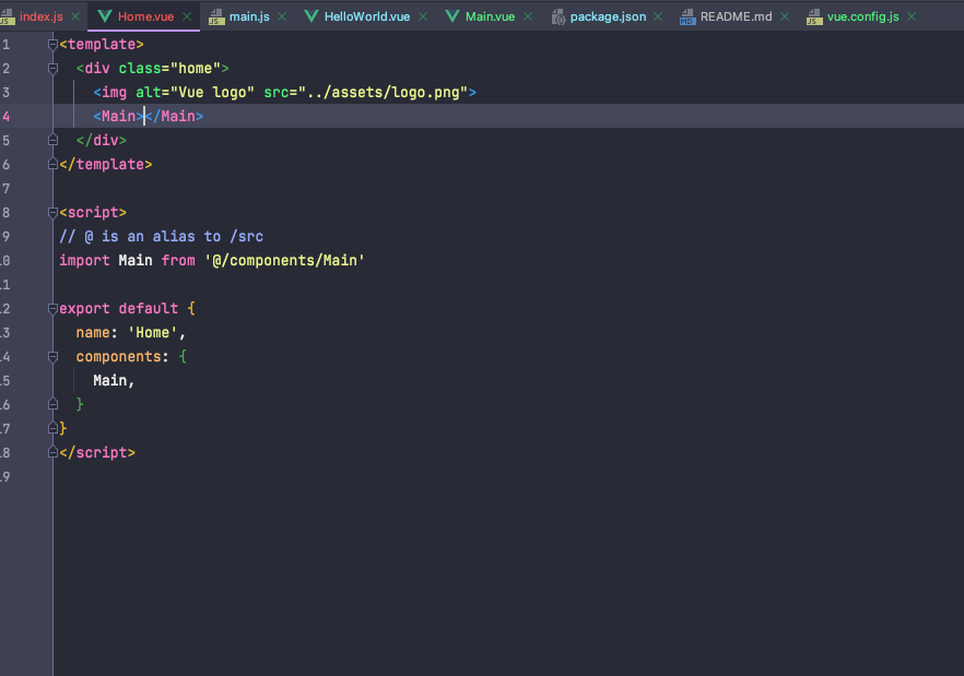 Vue 프로젝트로 돌아와서 component 부분에 Main.vue라는 파일을 만든다.