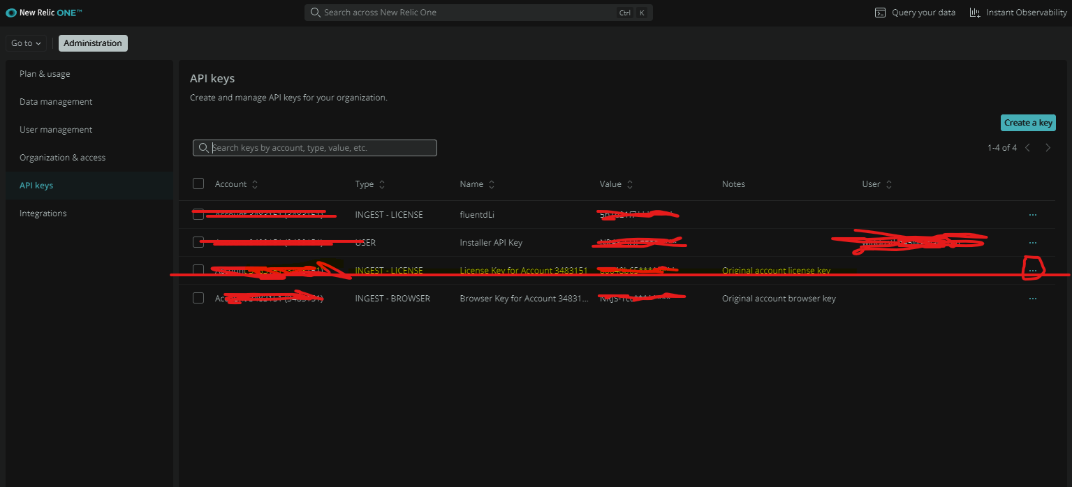 Name 부분에 INGEST - LICENSE 라는 녀석이 라이선스 키 이므로 동그라미 친 부분을 클릭하여 Copy Key를 눌러 라이선스 키를 복사해둔다.