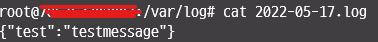 fluentd.conf에서 source 부분에서 작성했던 path의 경로에 2022-05-17.log가 생성이 되고 {"test":"testmessage"}가 들어간다.