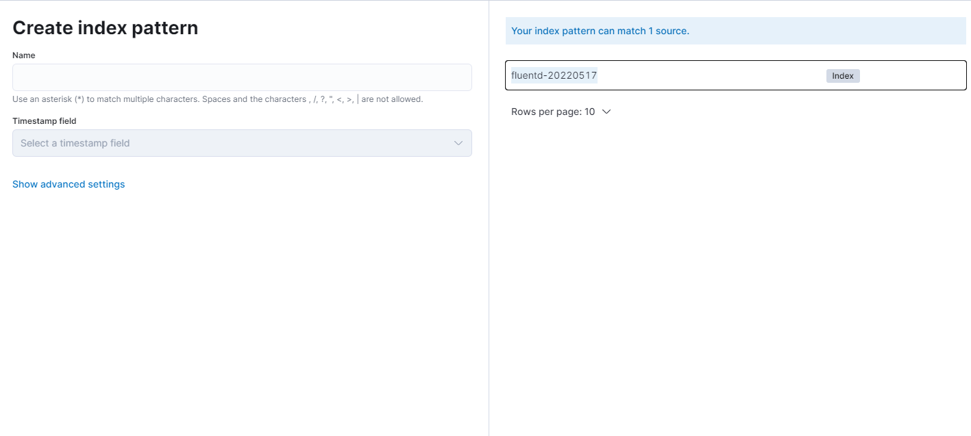 그러면 pattern을 생성할때의 name은 fluentd-*로 하면된다.
